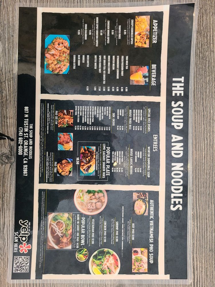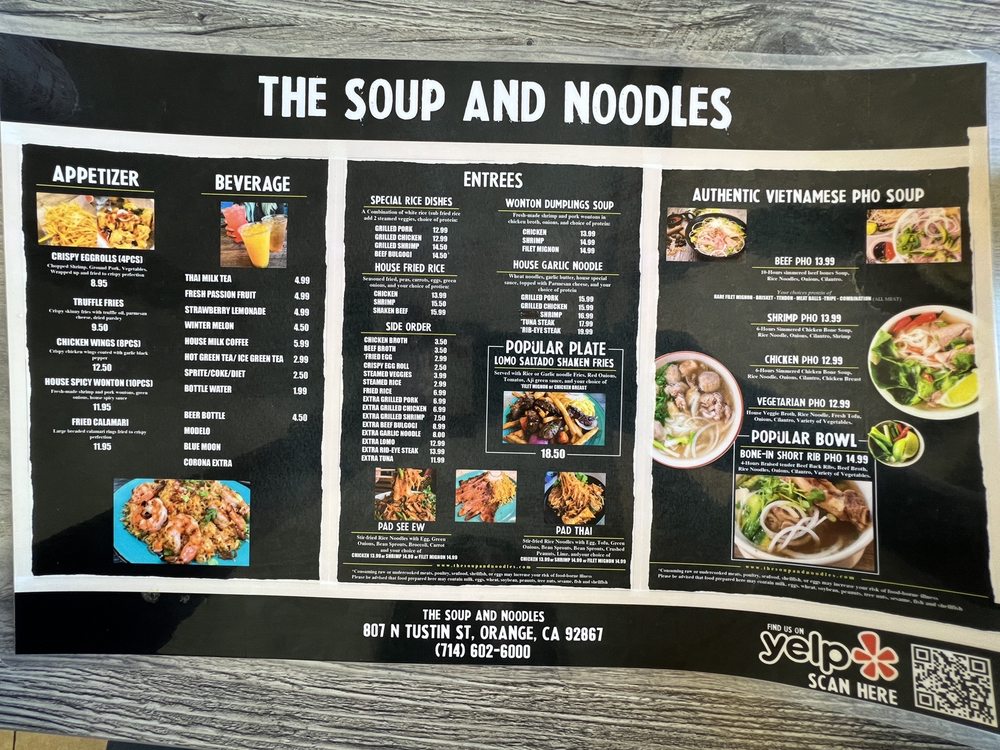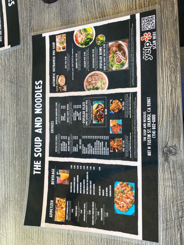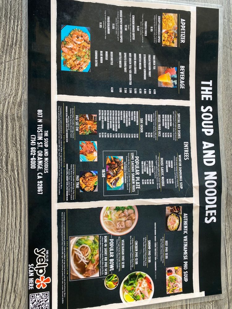 Welcome to The Soup and Noodle, a Peruvian restaurant located at 807 N Tustin St Orange, CA 92867. This cozy spot offers a range of delicious dishes that are sure to satisfy your cravings. From appetizers like Crispy Egg Rolls and House Spicy Wontons to flavorful Pho options and mouth-watering Garlic Noodles, The Soup and Noodle has something for everyone.