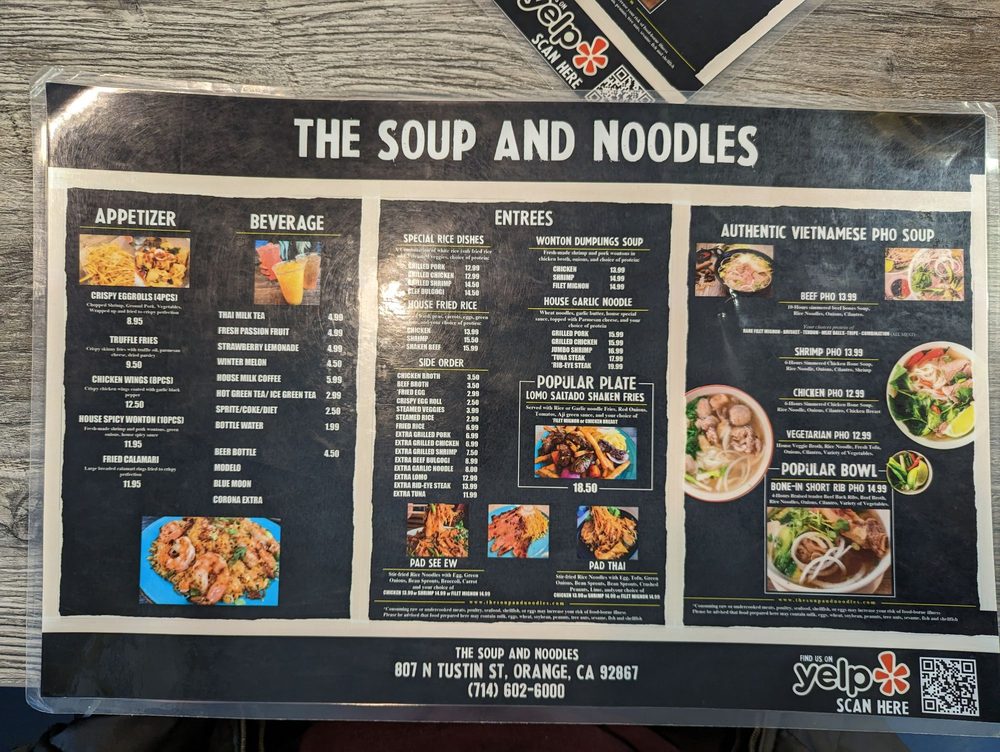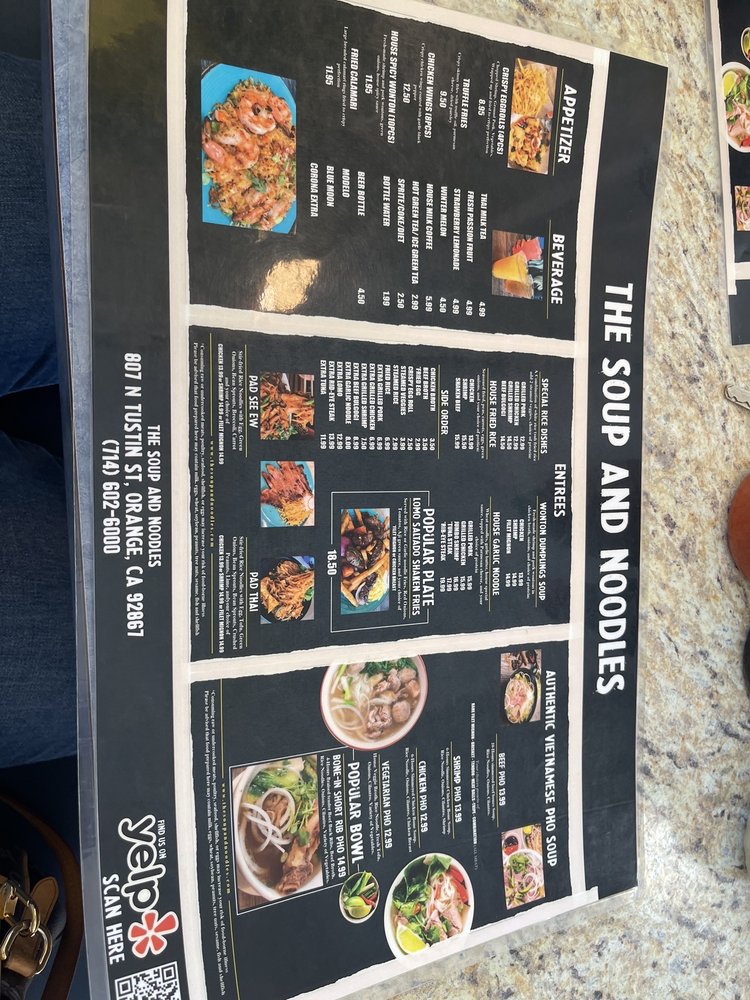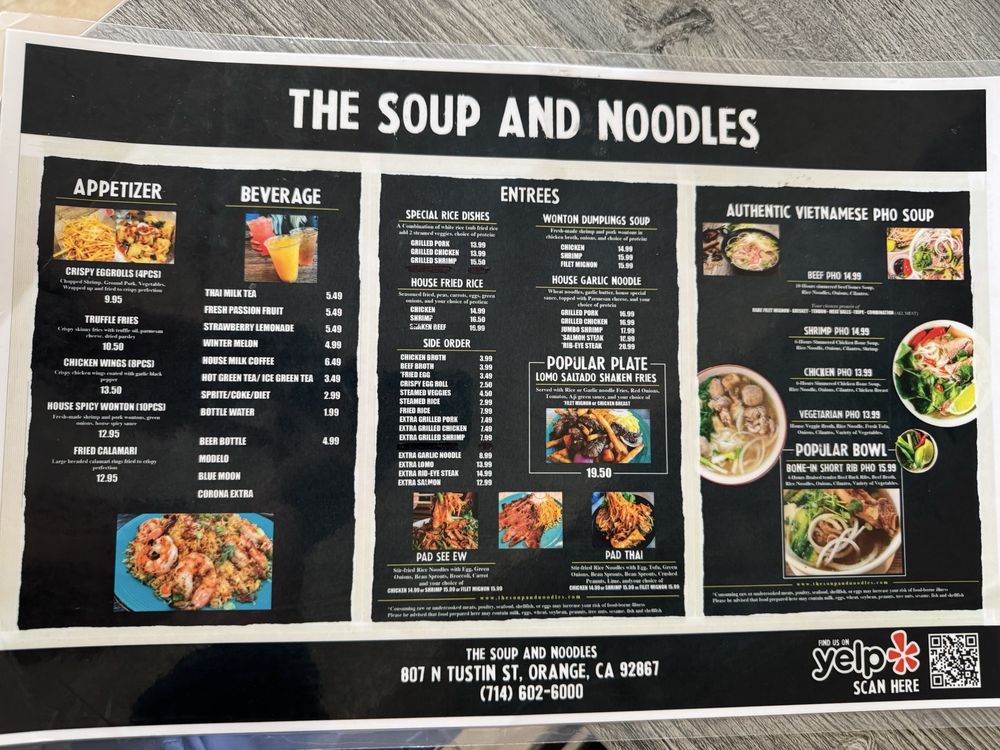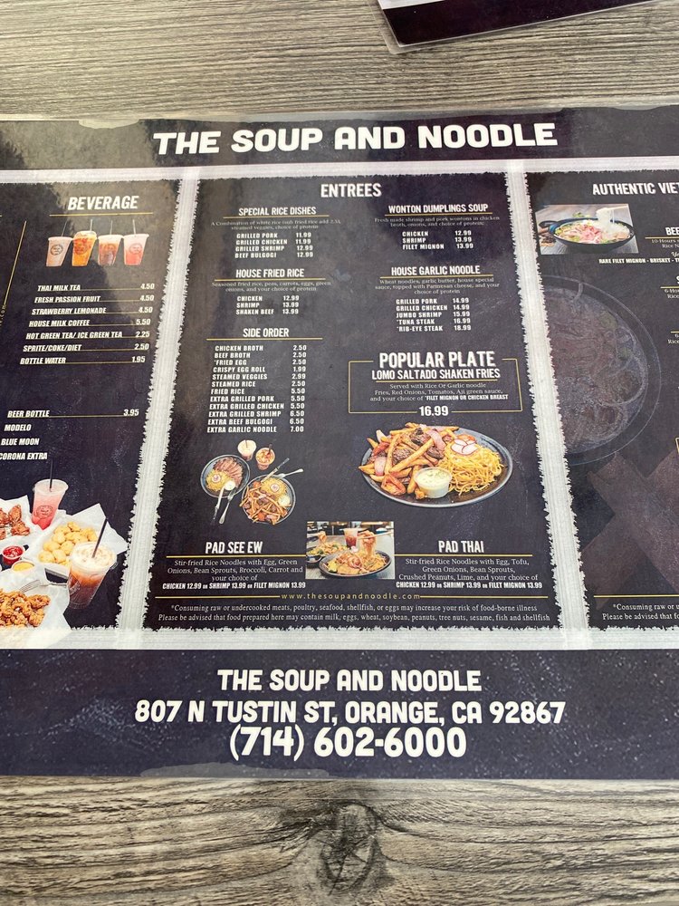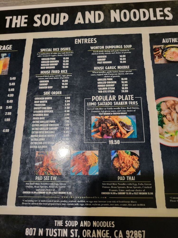 Welcome to The Soup and Noodle, a Peruvian restaurant located at 807 N Tustin St Orange, CA 92867. This cozy spot offers a range of delicious dishes that are sure to satisfy your cravings. From appetizers like Crispy Egg Rolls and House Spicy Wontons to flavorful Pho options and mouth-watering Garlic Noodles, The Soup and Noodle has something for everyone.